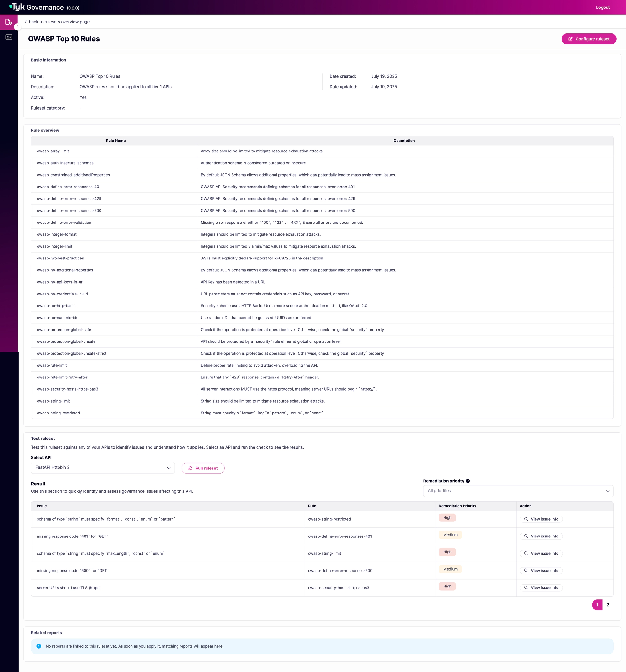 In Tyk Governance, “Remediation Priority” indicates the urgency with which an API issue should be addressed, based on its risk level and potential impact. This priority helps teams focus their efforts on the most critical issues first.